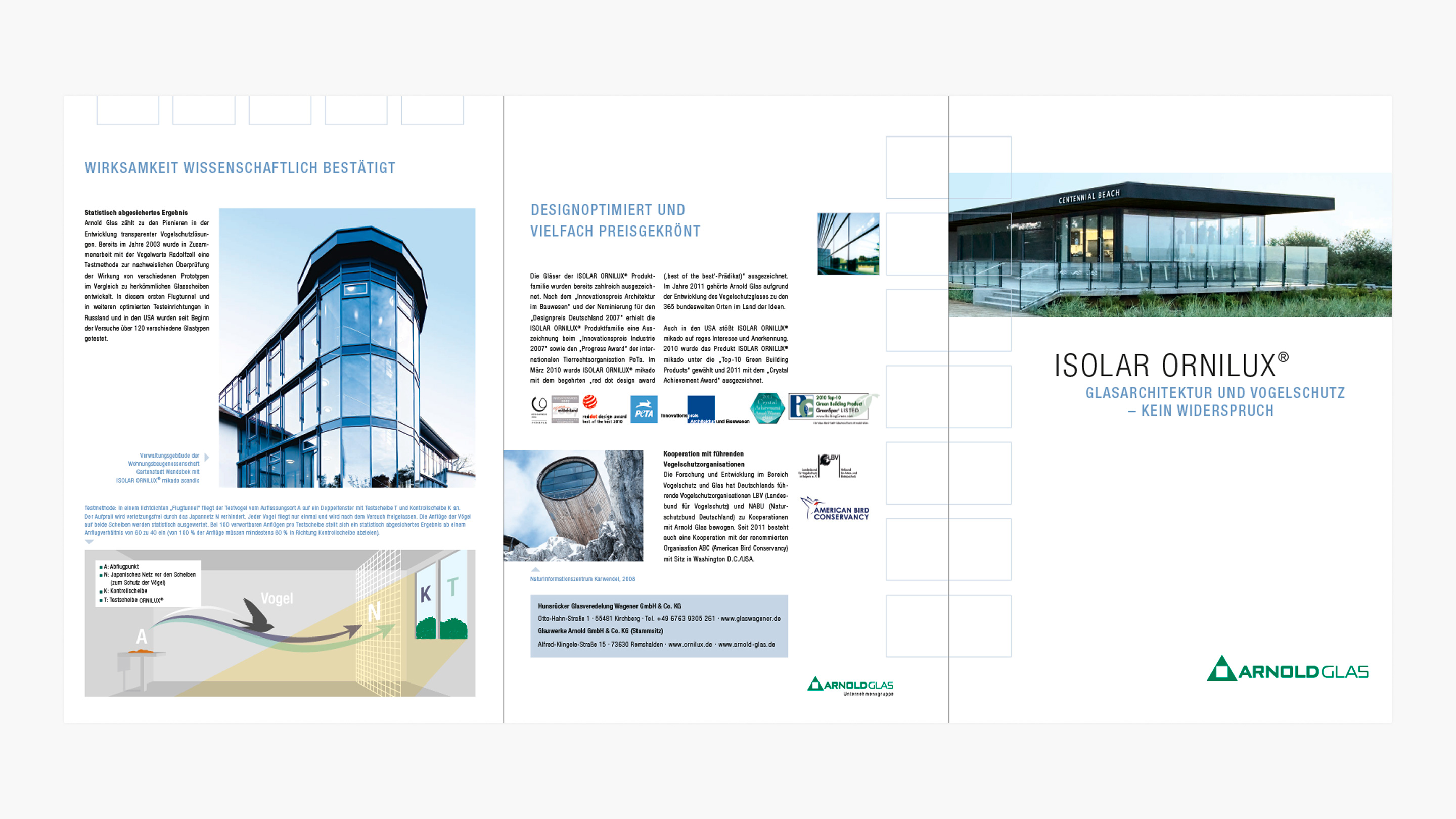 The Arnold Glas Group, based in Remshalden, is one of the most innovative flat glass processors in Europe. Around 800 employees work at six sites in Germany and Austria. They produce the extensive ISOLAR® Glas insulating glass range as well as toughened and laminated safety glass and also offer numerous services, from preliminary planning to implementation. The family character of the medium-sized company is still part of the corporate culture today, which is clearly expressed in its commitment to sustainability. On the one hand for the environment and nature, and on the other for the people in the region. Over the course of our many years of collaboration, we have not only created the Arnold Group’s brand identity, including its website, but have also built on this to cover the entire range of corporate and product communication, from classic PR and digital marketing to corporate publishing and film to the planning, implementation and communication support of major events.