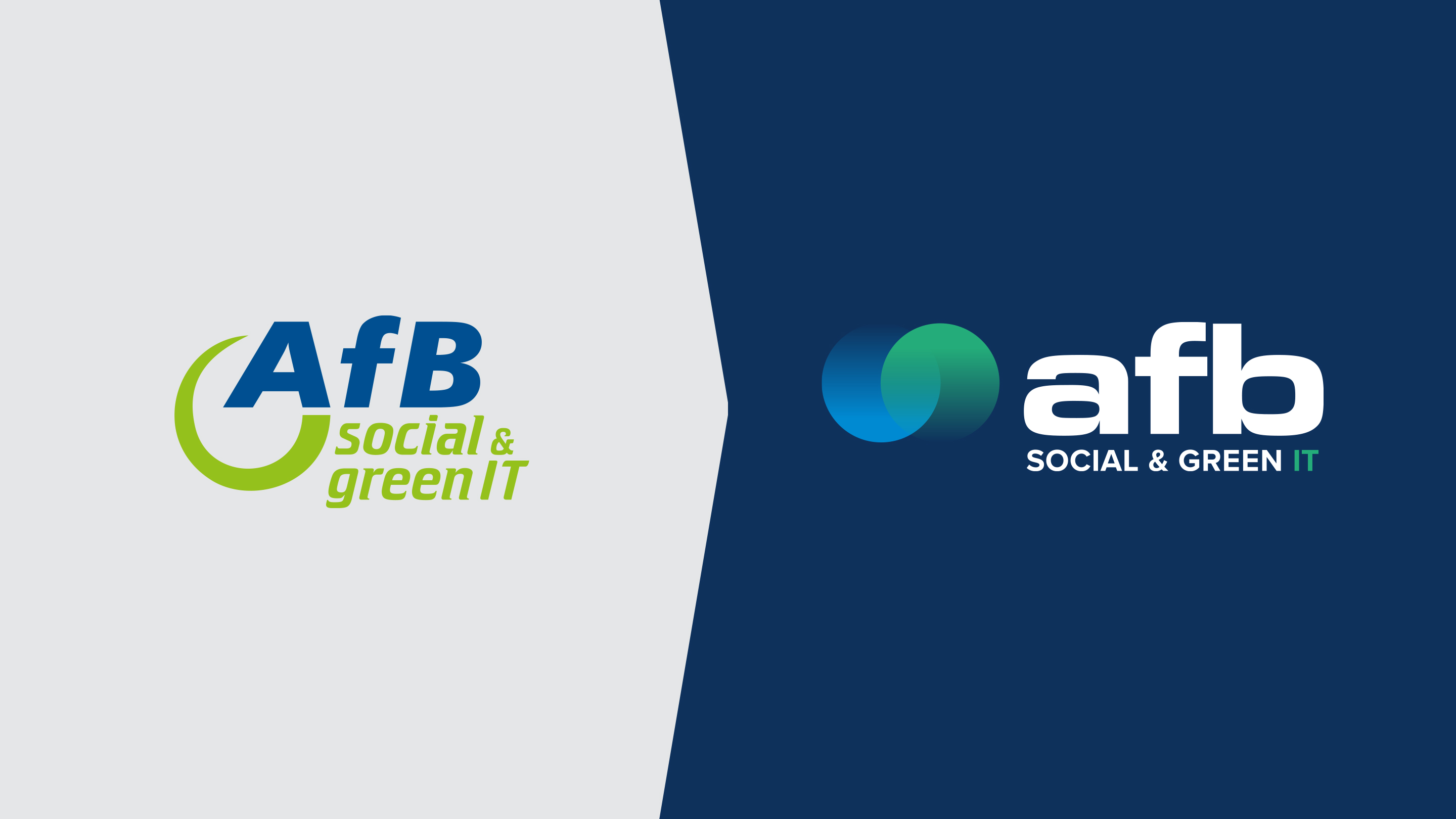 Gemeinsam mit afb haben wir den Markenauftritt strategisch neu gedacht und das Logo grundlegend überarbeitet. Die neue Wort-Bildmarke integriert die Lemniskate als einprägsames Zeichen für den Second-Life-Gedanken. Sie steht für Dualität, Balance und Verbindung, für Zyklus und Unendlichkeit. Die modernisierten Farbtöne Blau und Grün symbolisieren einerseits Technologie, Qualität und Zuverlässigkeit, andererseits Natur, Leben und Nachhaltigkeit. So bleibt der nachhaltige Kern der Marke erhalten, während sich afb social & green IT zugleich selbstbewusst und eigenständig positioniert.